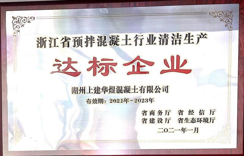 湖州上建華煜獲“浙江省預拌混凝土行業(yè) 清潔生產(chǎn)達標企業(yè)”榮譽稱號
